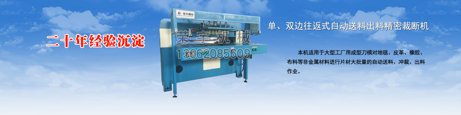 鹽城榮宇機械有限公司座落在美麗富饒的黃海之濱—鹽城,是我國皮革、制鞋、橡塑、箱包、手套、體育用品、汽車用品、服裝等行業(yè)用裁斷、下料、切條、拉布鋪布、壓花復合機械專業(yè)研制生產的企業(yè)。
